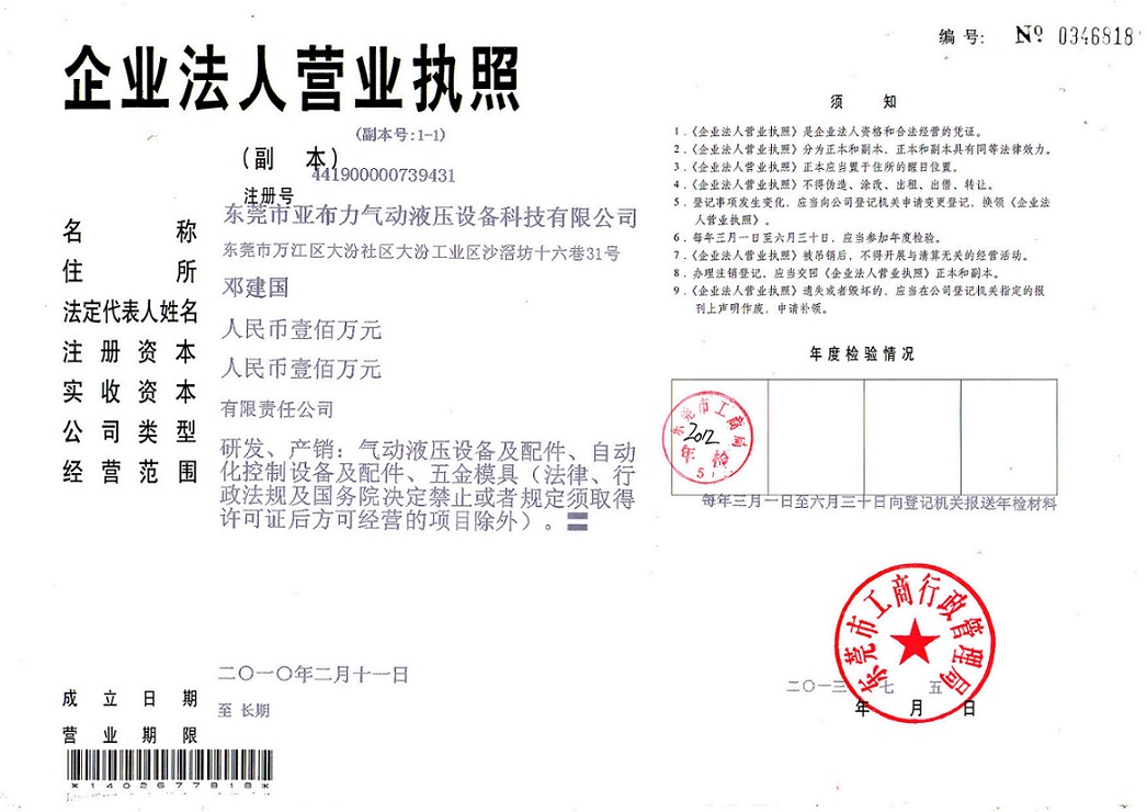 粤ICP备12048194号-1 Copyright?2013版权所有 东莞市亞布力气动液压设备科技有限公司 大陆总部地址:广东省东莞市万江区上甲罗屋坣路九巷8号